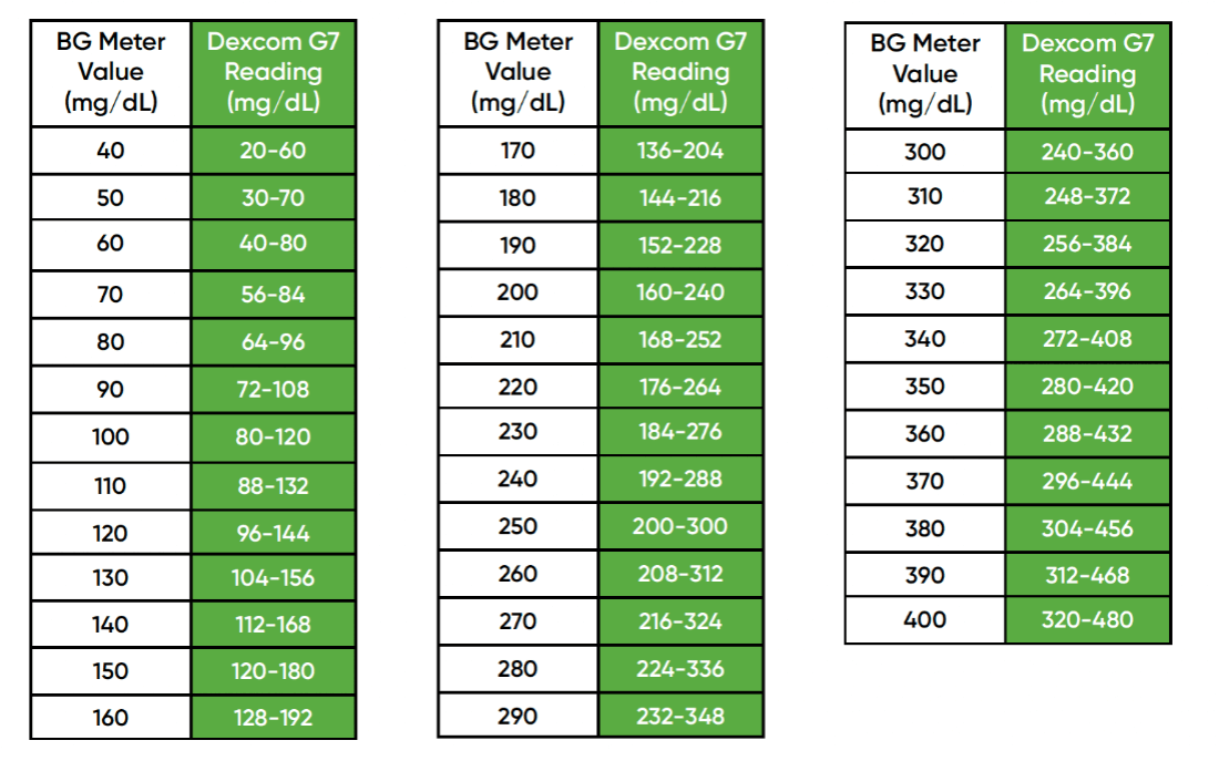 Dexcom G7 Calibration Chart