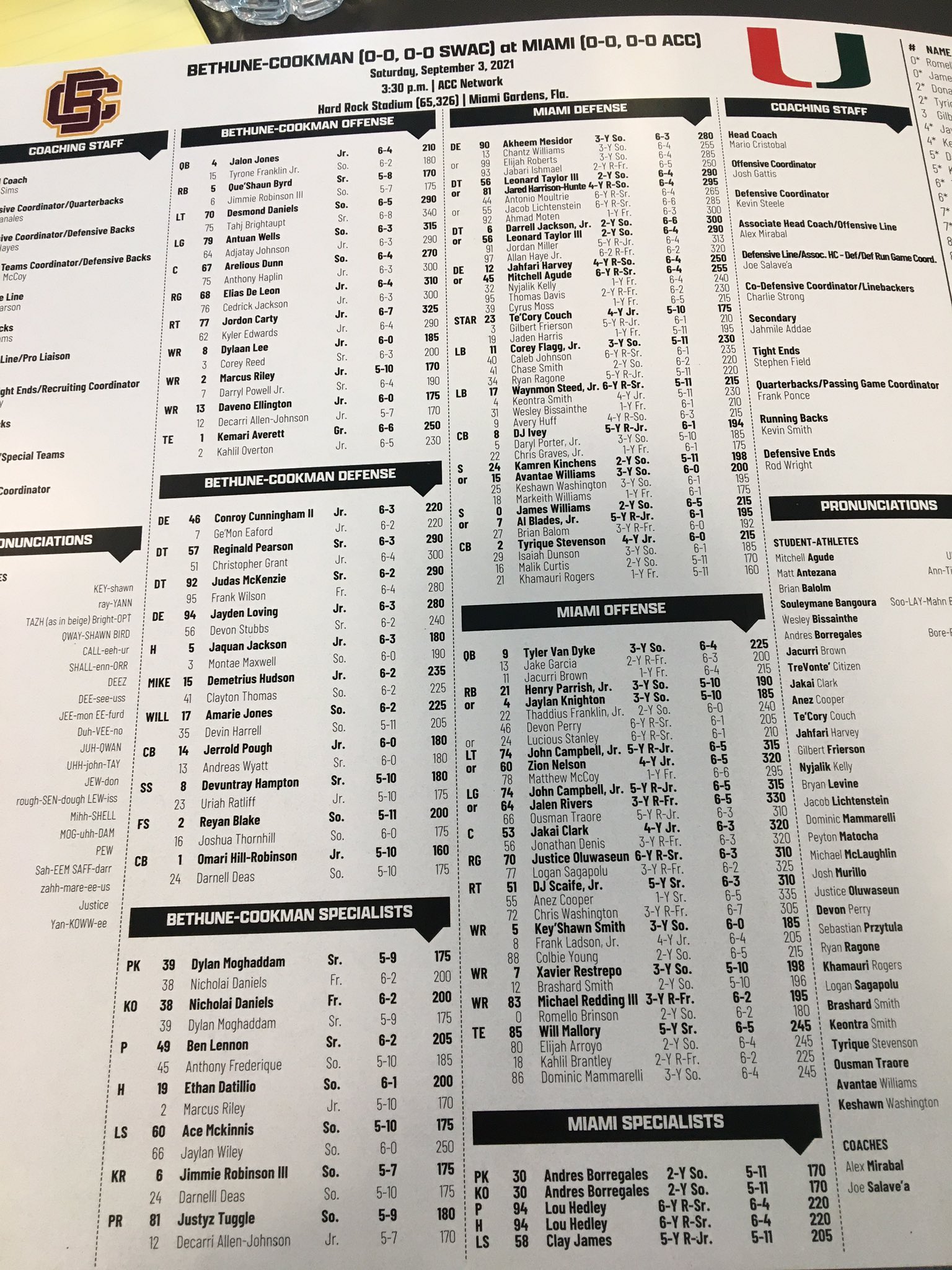 Web Miami Didn't Release An Official Depth Chart?